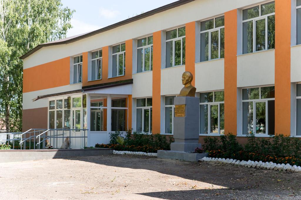 Фото №138. Здание Каипской общеобразовательной школы Лаишевского района. 2014Каипы. Бюст И.С. Матвееву, Герою Советского Союза.