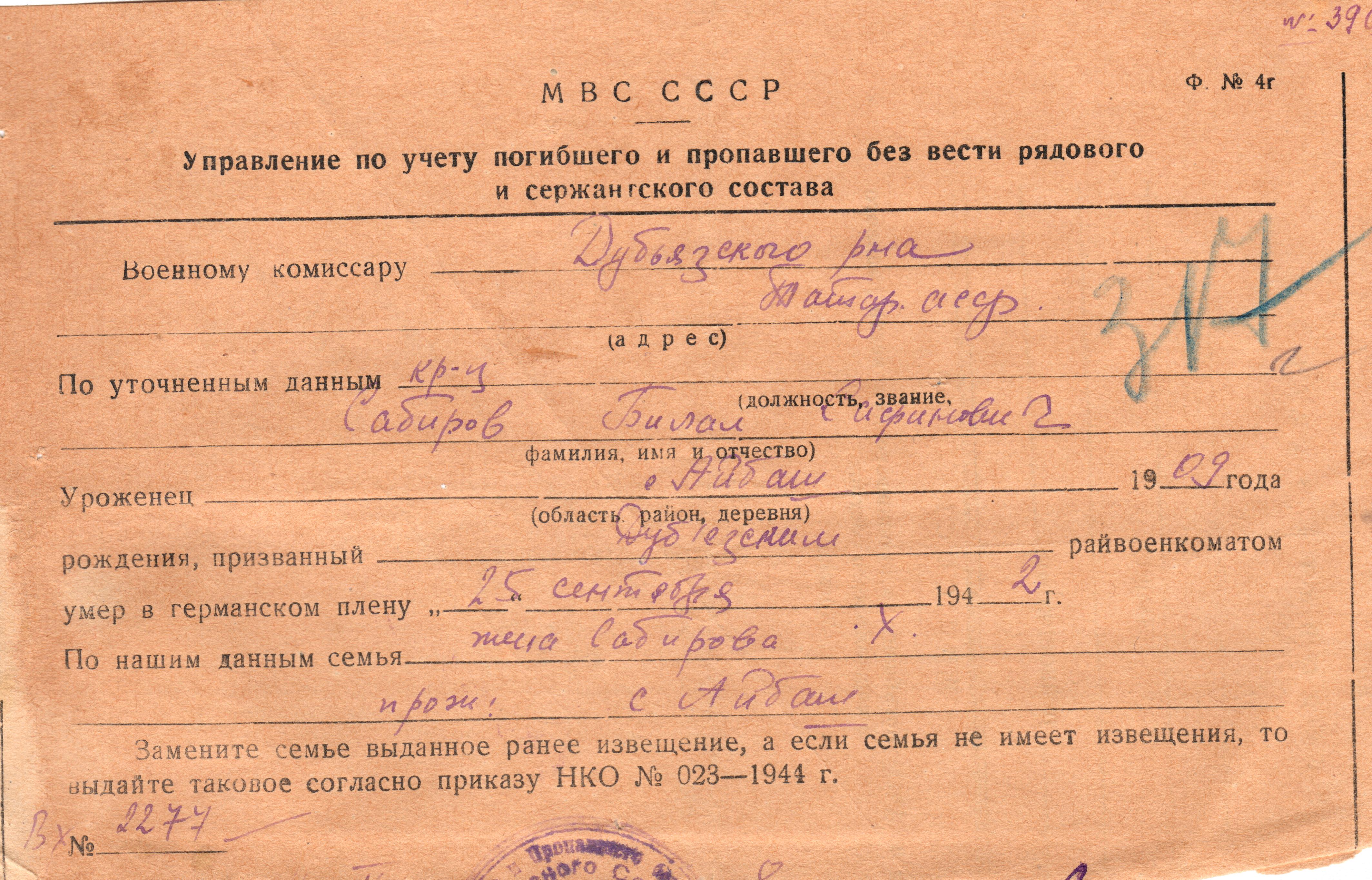 Дата выбытия __.10.1942
