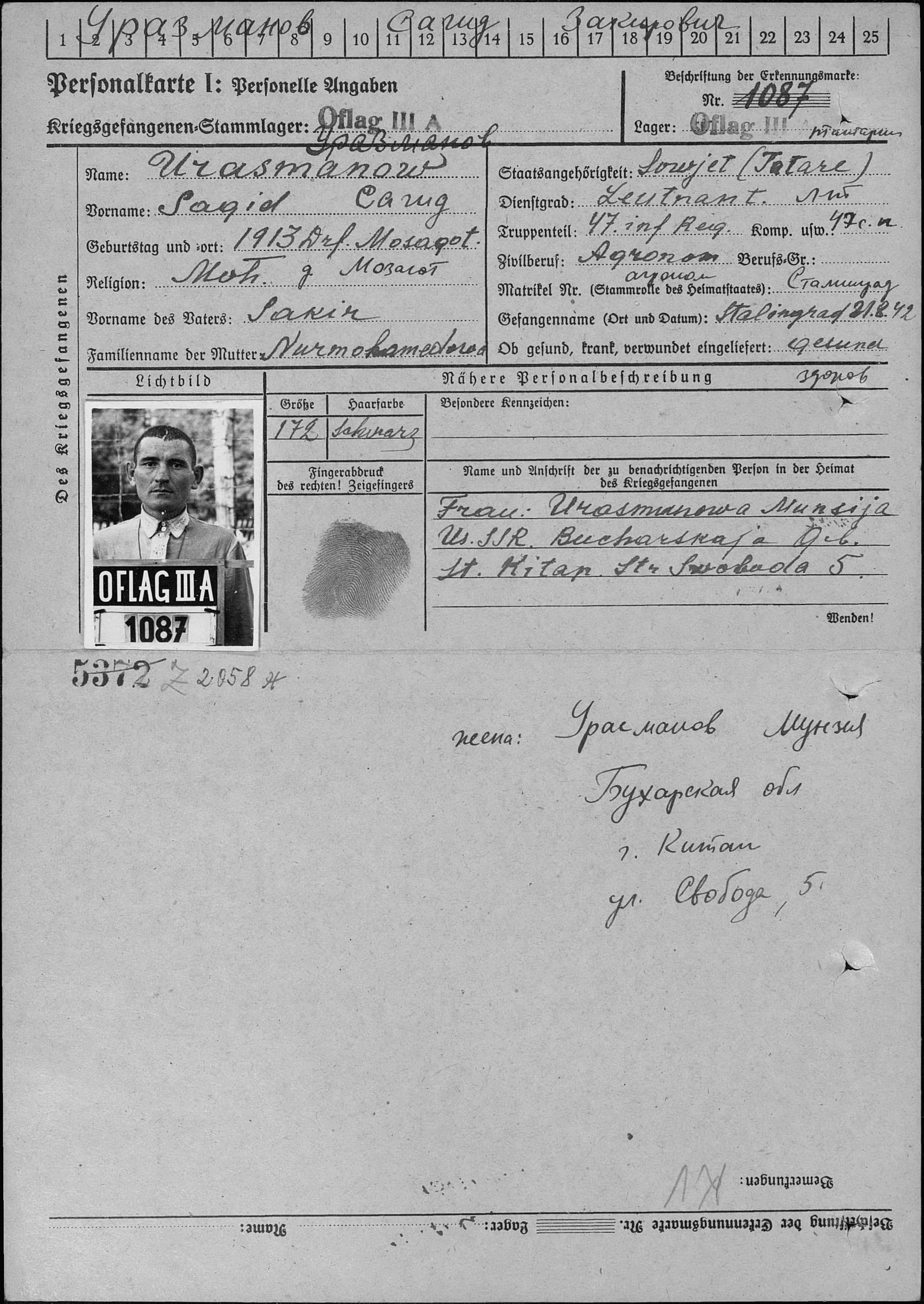 г.Люкенвальд,офлаг III A(в плен:21.8.42:Волгоград,освобожден)