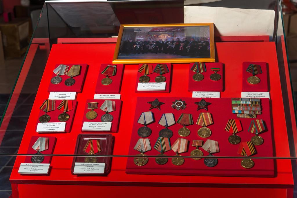 Фото №18251. Фрагмент экспозиции историко-краеведческого музея Юхмачинской СОШ посвященный наградам участников войны. 2014