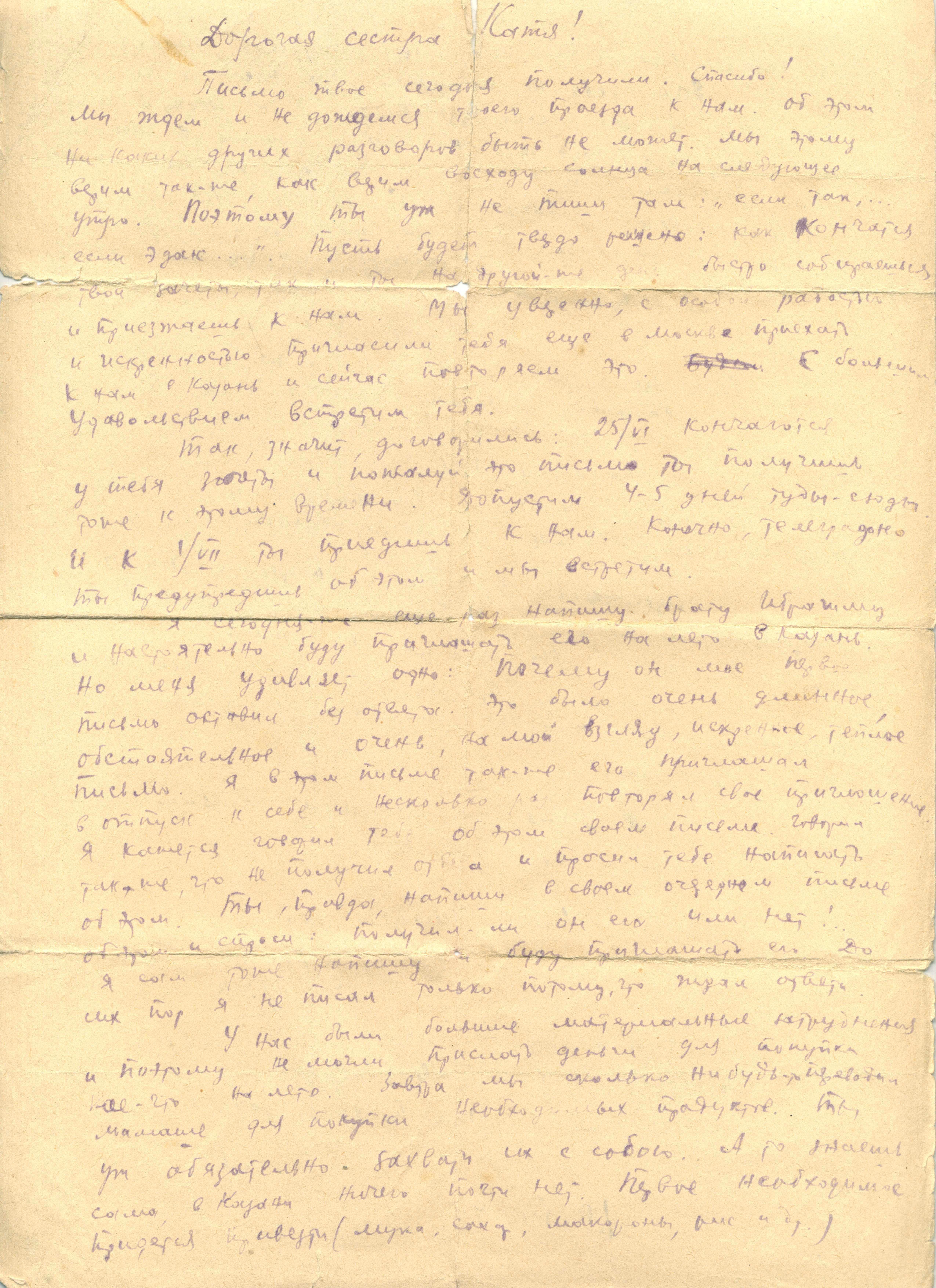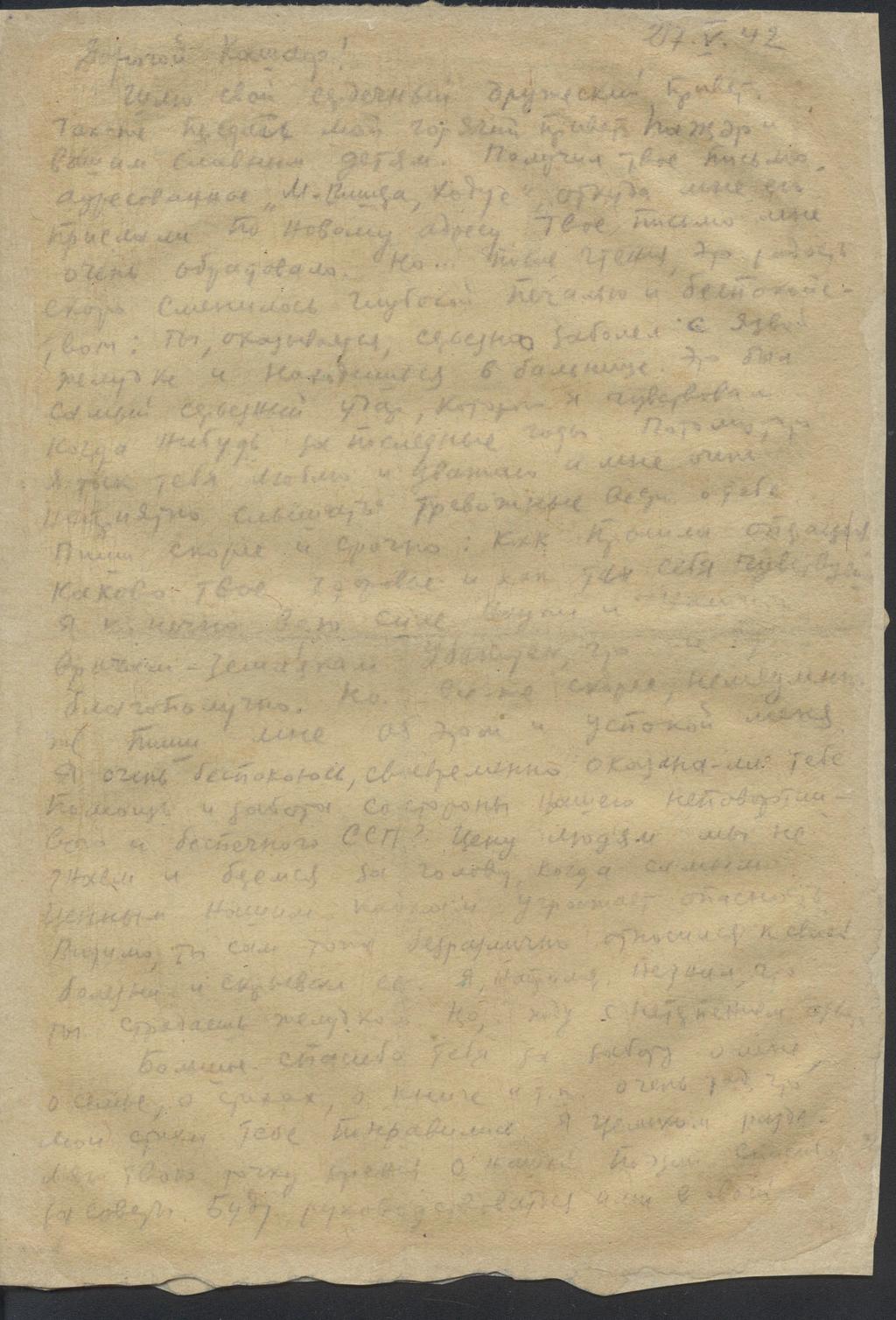 Фото №86395. НМРТ КП-22536-17 Джалиль М М Документ Письмо татарского поэта М Джалиля сестре Х Залиловой (Кате)_1