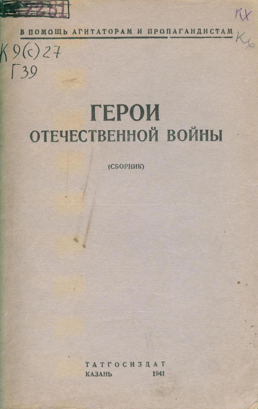 Фото №93920. Герои Отечественной войны: сб. – Казань: Татгосиздат, 1941. – 54с. – ("В помощь агитаторам и пропагандистам")