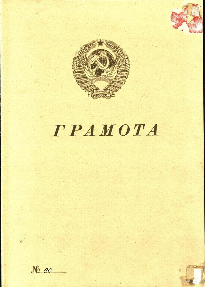 Фото №89360. НМРТ КППи-119788-2. Документ: Грамота Героя Советского Союза Столярова Н. Г.