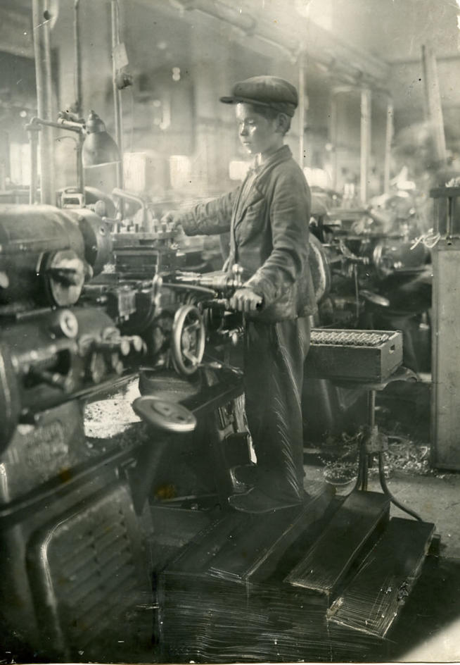 Фото №89521. Ваня Чередилин – 12-летний подросток, за 6 месяцев овладевший специальностью токаря. 1942 Особой заботы требовали к себе в годы Великой Отечественной войны дети. Суровые военные реалии, связанные с такими явлениями, как мобилизация, эвакуация, резкое снижение уровня благосостояния граждан, коренным образом отразились на положении подрастающего поколения. «Дети войны», лишившись привычной семейной атмосферы тепла, заботы и уюта, поддержки родных и близких, нуждались в специальной социально-педагогической и психологической помощи взрослых. Оказание ее детям и подросткам являлось делом государственной важности, особенно в тыловых регионах, куда направлялись эвакуированные. Из скудных ресурсов для маленьких граждан выделялись продукты питания, открывались детские столовые, выдавались предметы одежды и обуви. Согласно распоряжению СНК ТАССР от 19 августа 1941 г. для обеспечения питанием только эвакуированных детей из прифронтовой полосы было отпущено 510 тонн муки, 50 тонн кондитерских изделий, 33 тонны сливочного масла, 26 тонн колбасных изделий, 21 тонну мяса. В Татарстане была развернута широкая сеть детских домов, детсадов и интернатов, прибывших из временно захваченных врагом территорий, а также из городов, которым угрожали воздушные налеты.