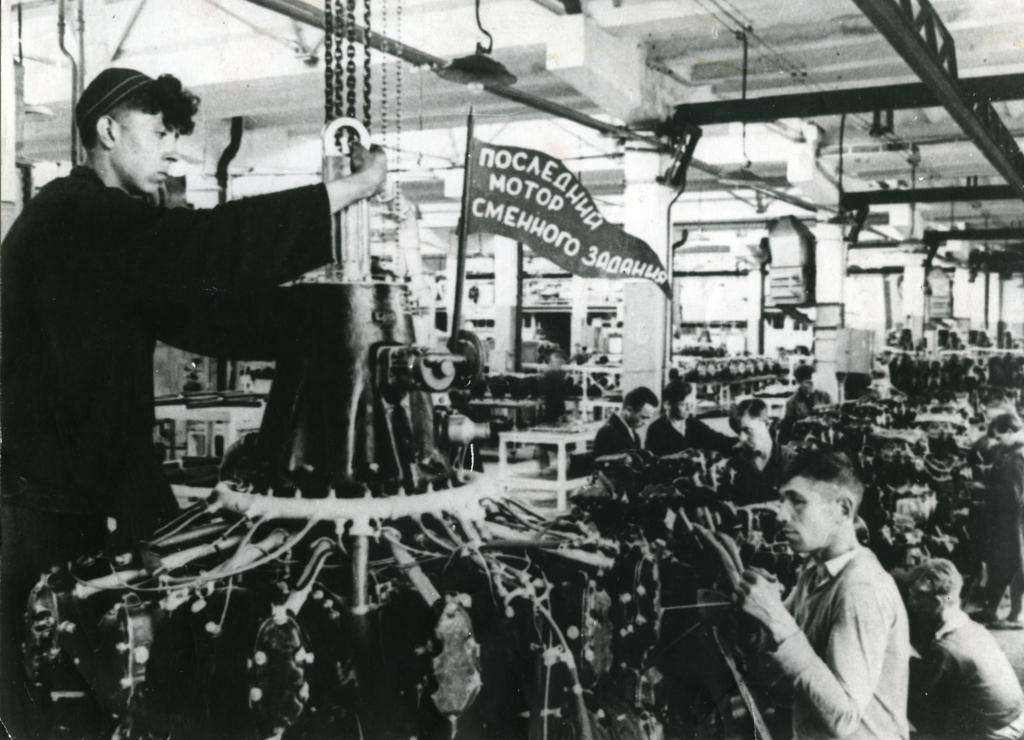Фото №89526. Комсомольско-молодежная бригада моторного цеха авиазавода им. С.П. Горбунова. 1941-1945Закономерным результатом величайшего напряжения рабочих стало создание в Татарстане мобильной военной экономики. Республика поставляла на фронт свыше 600 наименований оружия, боеприпасов, снаряжения. На Казанском авиационном заводе № 22 им. С.П. Горбунова (единственном в стране, ныне – акционерное общество «Казанское авиапредприятие») выпускались стратегические бомбардировщики Пе-2, которые до 1943 г. были основной ударной мощью бомбардировочной авиации. Здесь же производились бомбардировщики Пе-8, опережавшие в то время лучшие образцы самолетов этого класса во всех воюющих армиях. Всего за годы войны было выпущено 79 бомбардировщиков Пе-8 и более 10 тыс. – самолетов Пе-2[6]. Создатель бомбардировщиков Пе-2, Пе-8 В.М. Петляков вплоть до своей трагической гибели в начале 1942 г. был главным конструктором авиазавода № 22.