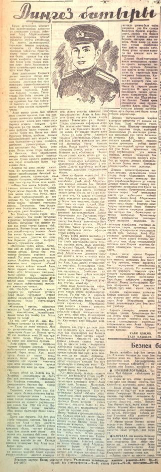 .- Газета “Кызыл Татарстан” . - 29 август 1943 ел. (№178)