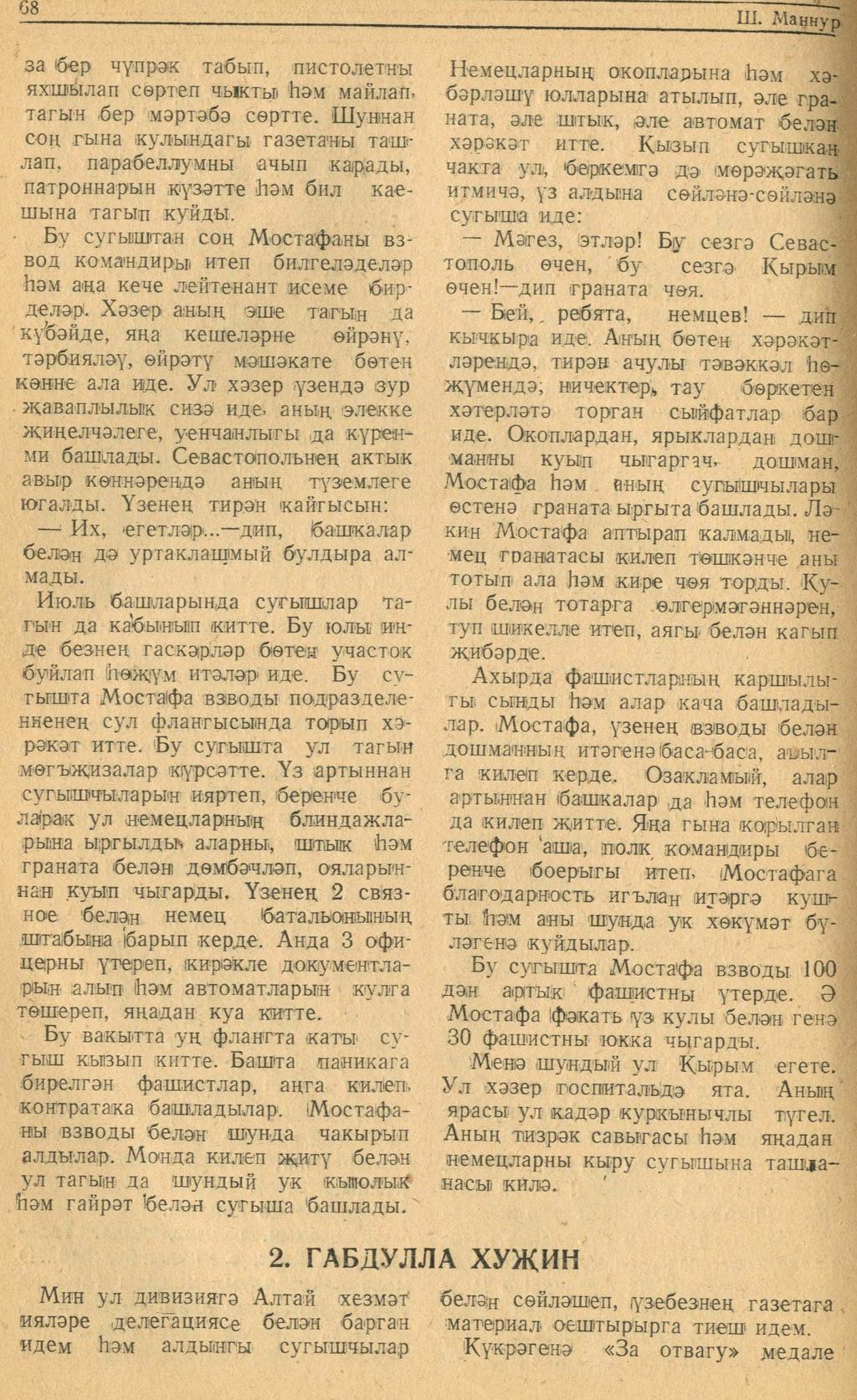 Мәкәлә.Ш.Маннур. “Журналист блок-нотыннан”. - Журнал “Совет әдәбияте”.- 1942 (№9-10). – 66-72 бб.
