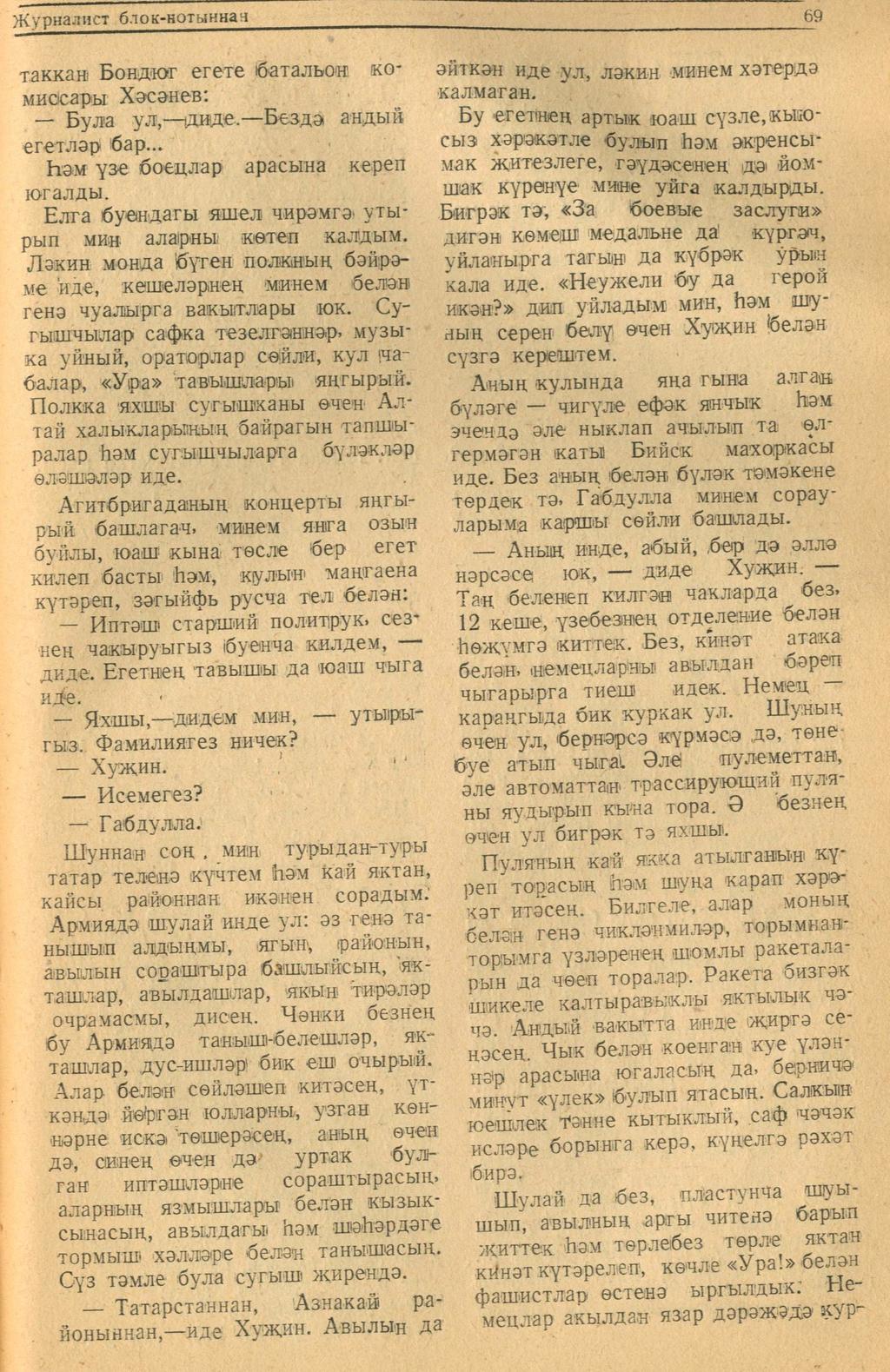 Мәкәлә.Ш.Маннур. “Журналист блок-нотыннан”. - Журнал “Совет әдәбияте”.- 1942 (№9-10). – 66-72 бб.