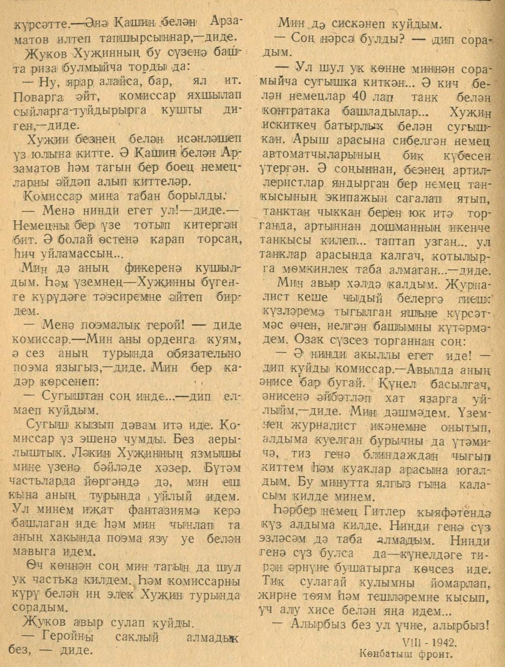 Мәкәлә.Ш.Маннур. “Журналист блок-нотыннан”. - Журнал “Совет әдәбияте”.- 1942 (№9-10). – 66-72 бб.