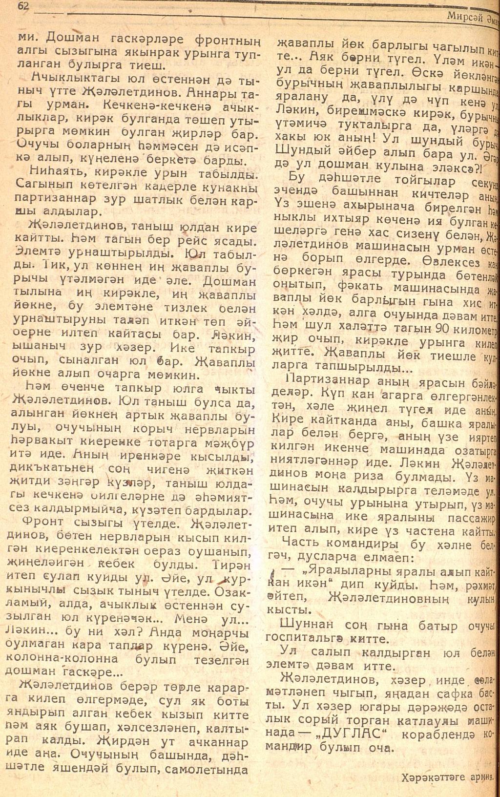 Мәкәлә. М.Әмир. “Һава батыры Җәләлетдинов”. - Журнал “Совет әдәбияте”. -1943 (№4).-60-62 бб.
