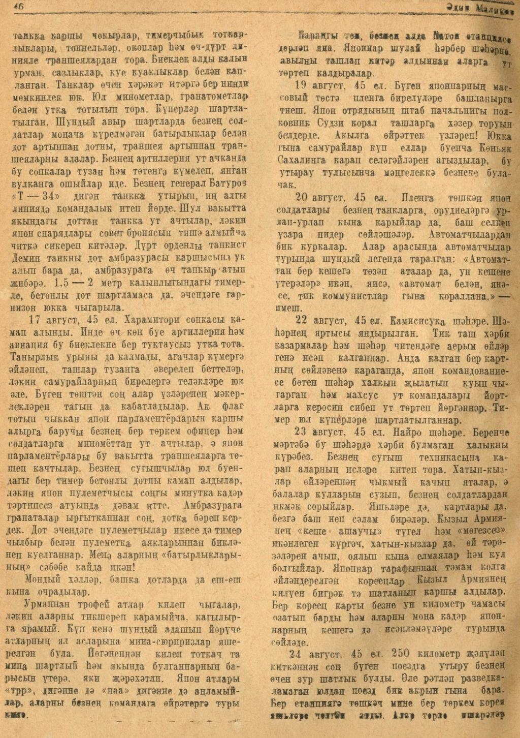 Мәкәлә. Әдип Маликов. “Солдат язмалары”. - - Журнал “Совет әдәбияте”.- 1945 (№12).-45-47 бб.