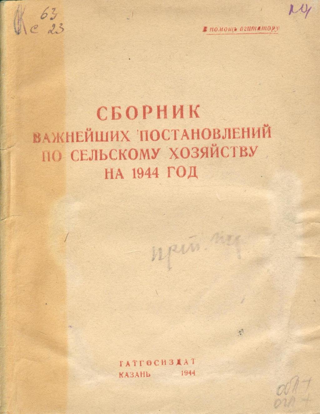 Сборник важнейших постановлений по сельскому хозяйству на 1944 год