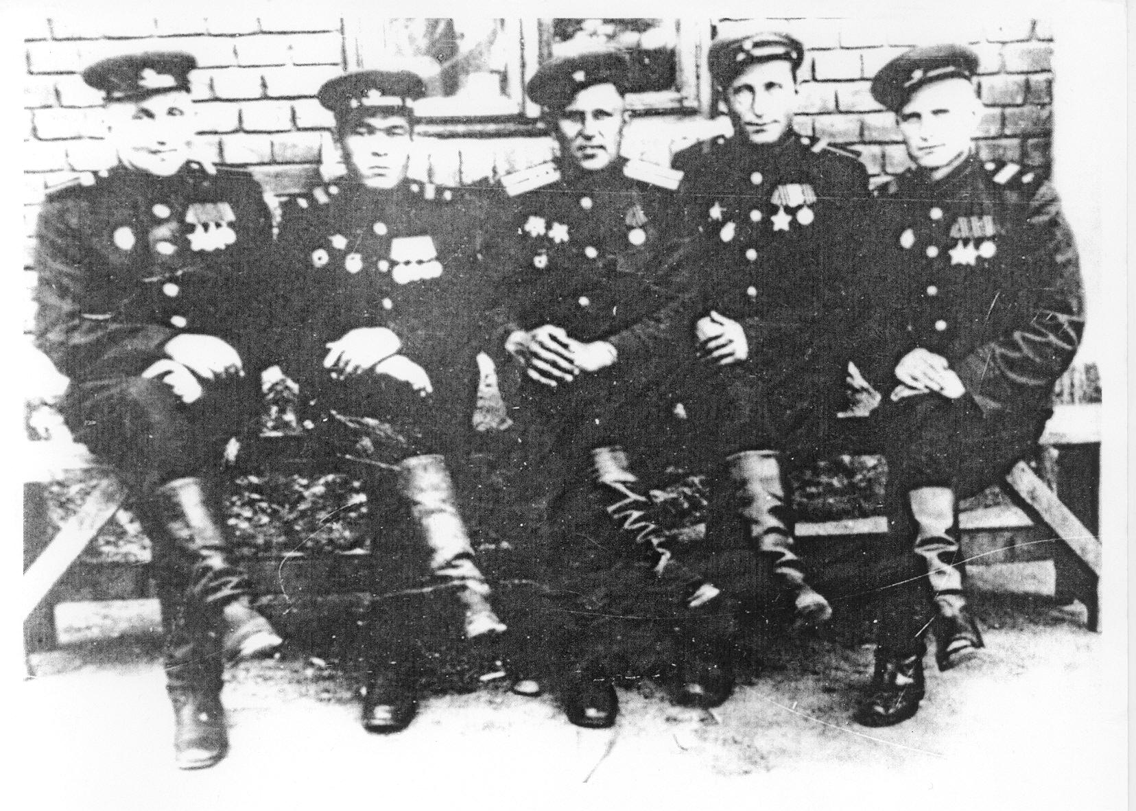 Фото. Халитов Р.К. (слева) с боевыми товарищами участниками Парада Победы. 1945