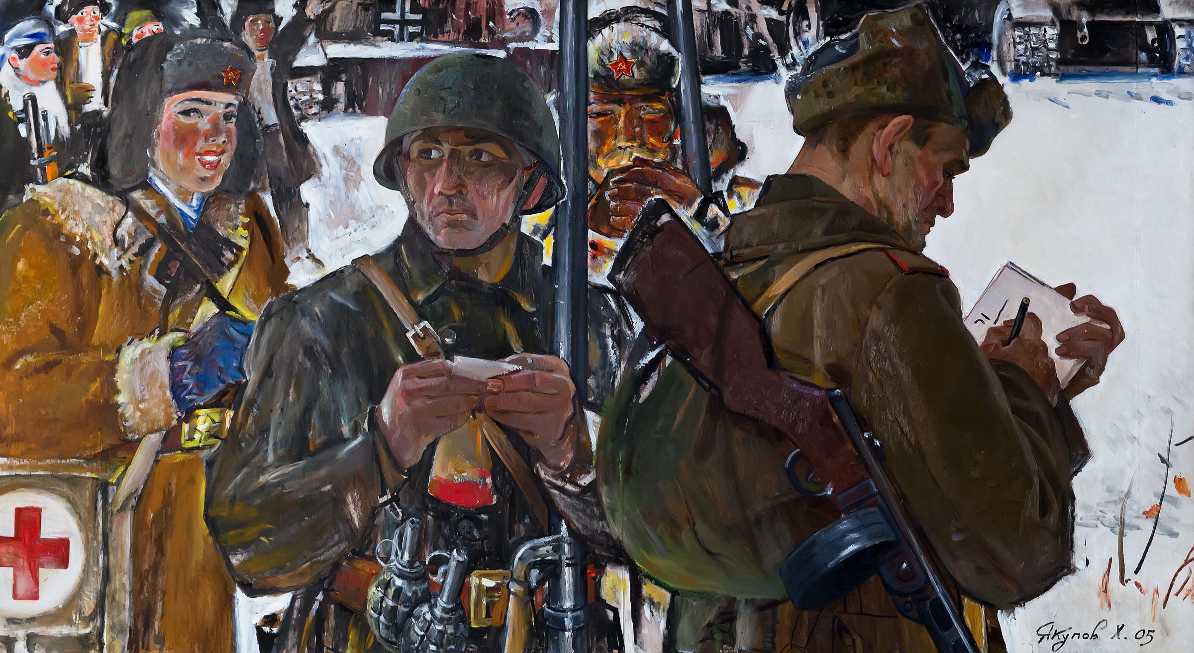 Картина. Якупов Х.А. (1919-2010) Между боями. Фронтовики. 2005. ДВП. Масло