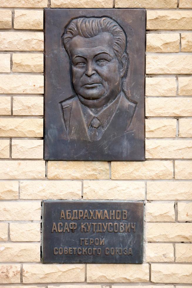 Барельеф Абдрахманова А.К. - Героя Советского Союза. Мемориальная стена Героям Советского Союза. Агрыз. 2014
