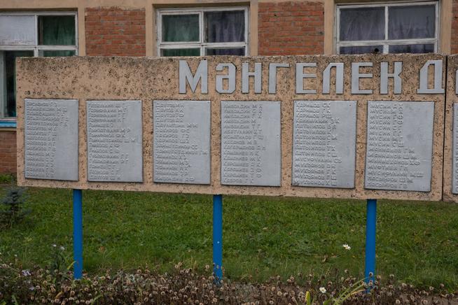 Информационный стенд павшим в годы Великой Отечественной войны односельчанам. Дер.Исенбаево, Агрызский район. 2014