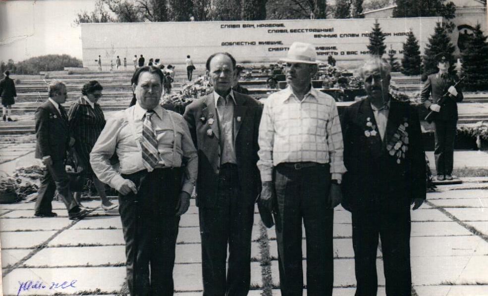 Фото. Музафаров Б.Х. с однополчанами у памятника погибшим при Яссы-Кишиневской операции в Мемориале Славы. Тирасполь. 1980-е гг.
