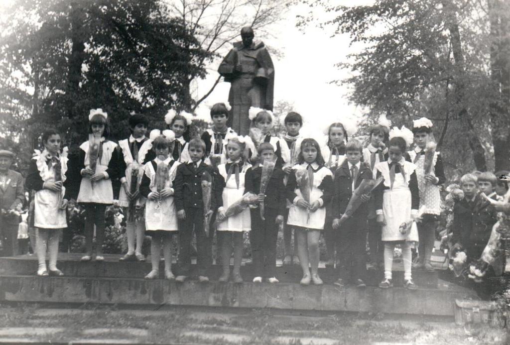 Фото. Возложение цветов памятнику павшим в годы Великой Отечественной войны. с.Гизель. 1980-е годы