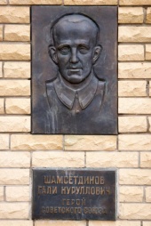 Барельеф Шамсутдинова Г.Н. - Героя Советского Союза. Мемориальная стена Героям Советского Союза. Агрыз. 2014