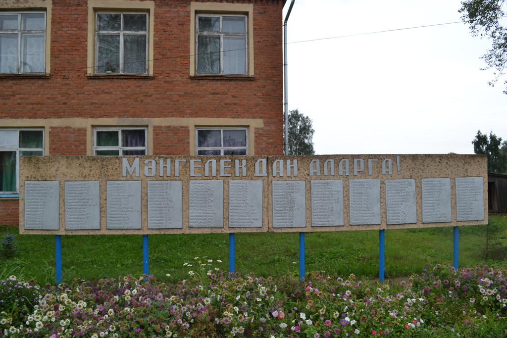 Информационный стенд павшим в годы Великой Отечественной войны односельчанам. Дер.Исенбаево, Агрызский район. 2014