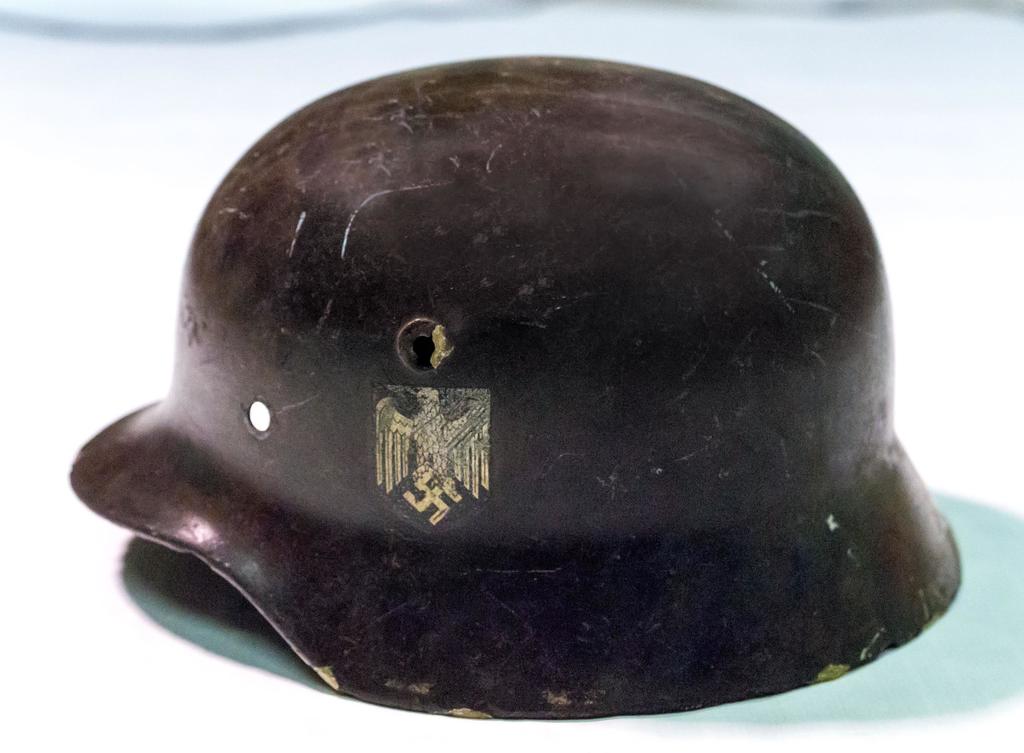На каску нанесена декаль - знак немецкого Вермахта - золотой орел.