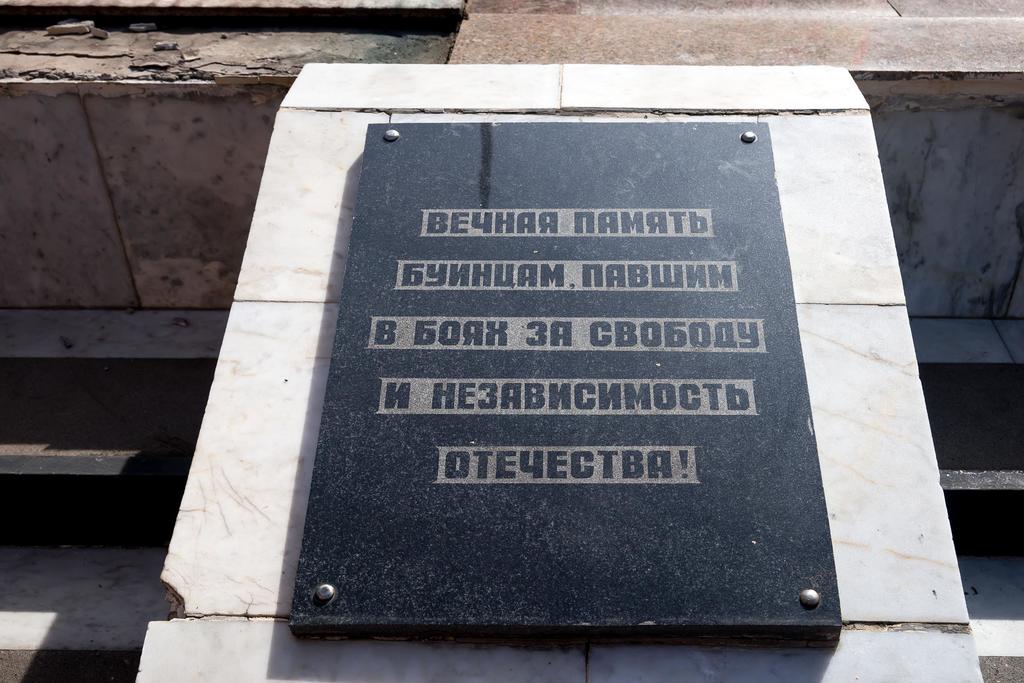 Мемориальная доска у подножия памятника павшим воинам. 2014
