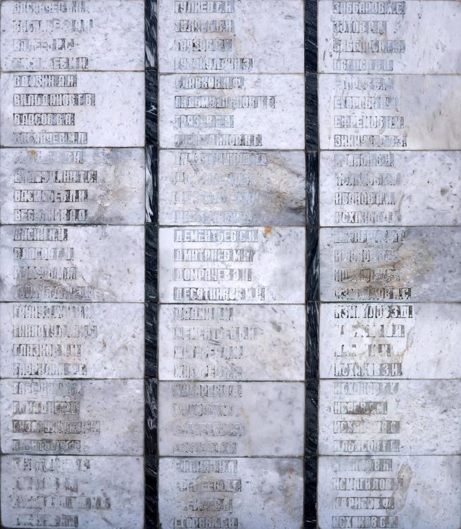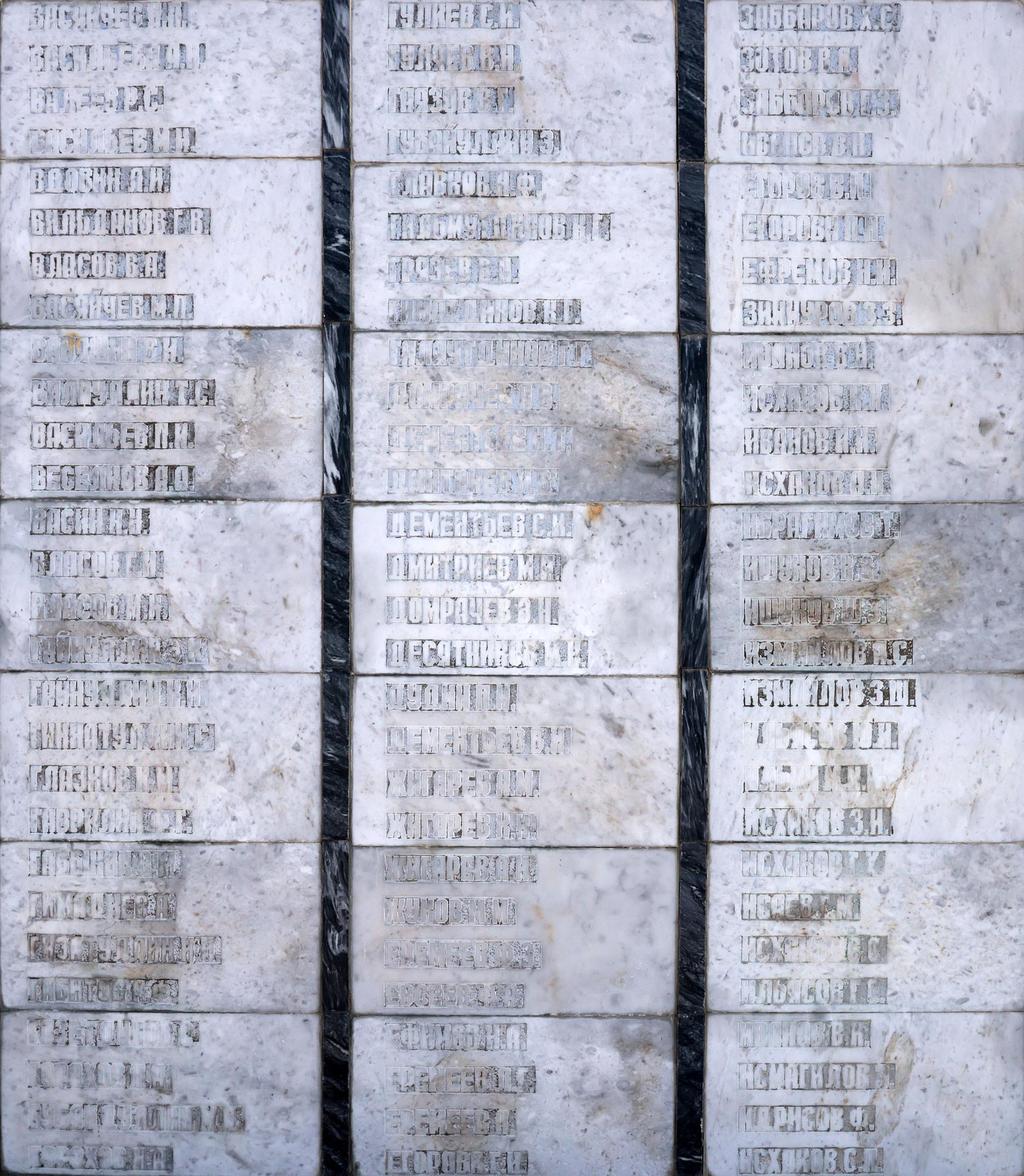 Монумент павшим воинам. Таблички с фамилиями погибших земляков. 2014
