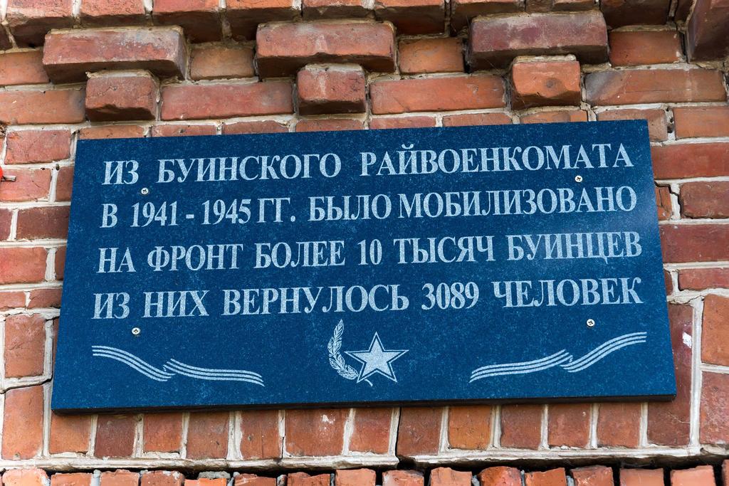 Мемориальная табличка на здании Буинского райвоенкомата. 2014