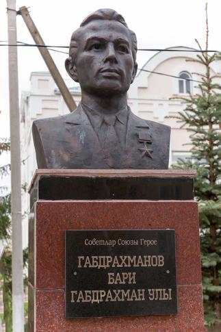 ГАБДРАХМАНОВ Бари Габдрахманович (25.5.1912, деревня Карамышево Чистопольского уезда Казанской губернии — 23.1.1944, город Кировоград, Украинская ССР), Герой Советского Союза (13.9.1944, посмертно), гвардии младший сержант. Работал в Донбассе, Москве, Перми (1928-41). В Красной Армии с сентября 1941. На фронтах Великой Отечественной войны с октября 1941, наводчик орудия 233-го гвардейского артиллерийского полка (95-я гвардейская стрелковая дивизия, 5-я гвардейская армия). В составе войск Сталинградского, Донского, Воронежского, Степного и 2-го Украинского фронтов принимал участие в битвах под Сталинградом (1942-43), Курском, Полтавой, на Днепре (все— 1943), в Кировоградской операции (1944). Проявил героизм в бою у села Грузское (Кировоградская область) 15января 1944: при отражении контратаки противника Габдрахманов подбил танк, уничтожил 2штурмовых орудия и 2 пулемёта. Погиб в бою.