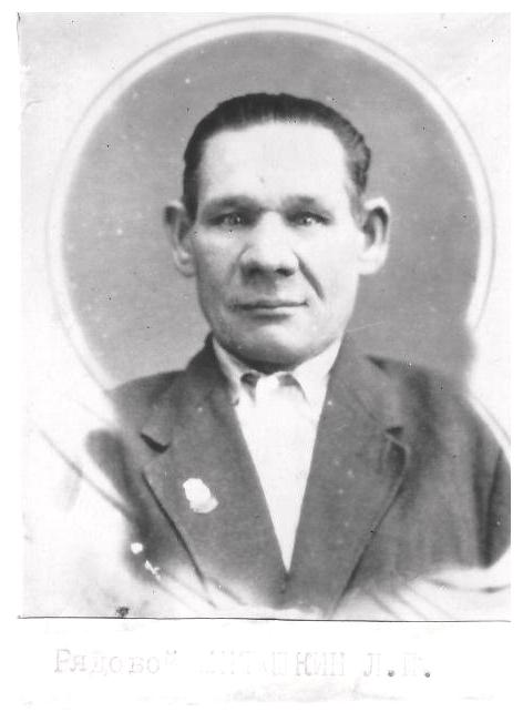 Митюшкин Леонид Петрович родился в Мензелинске в 1913 г. Мобилизован в 1942 г. Мензелинским РВК, рядовой, демобилизован в 1945 г.