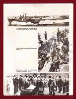 Фотография военного фотокорреспондента Виктора Антоновича Тёмина. 1945 г. Фотоколлаж. Торпедные катера на подходе к корейскому порту Сейсин. Август 1945 г. // «И на Тихом океане свой закончили поход...» // Подписание Акта о капитуляции Японии. Сентябрь 19