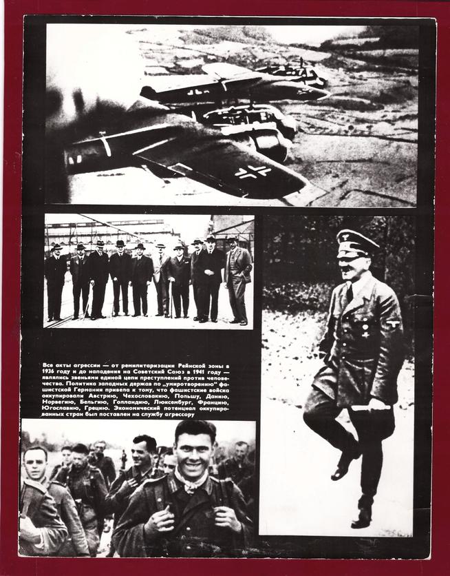 Фотография военного фотокорреспондента Виктора Антоновича Тёмина. 1940-е гг. Фотоколлаж. Все акты агрессии - от ремилитаризации Рейнской зоны в 1936 году и до нападения на Советский Союз в 1941 году - являлись звеньями единой цепи преступлений против человечества. Политика западных держав по «умиротворению» фашистской Германии привела к тому, что фашистские войска оккупировали Австрию, Чехословакию, Польшу, Данию, Норвегию, Бельгию, Голландию, Люксембург, Францию, Югославию, Грецию. Экономический потенциал оккупированных стран был поставлен на службу агрессору.