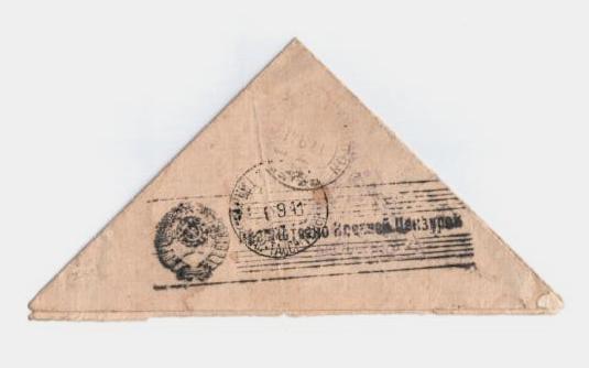 Письмо с фронта (треугольник) Жучкина С.Н. – участника Великой Отечественной войны матери Жучкиной П. 1941 года.