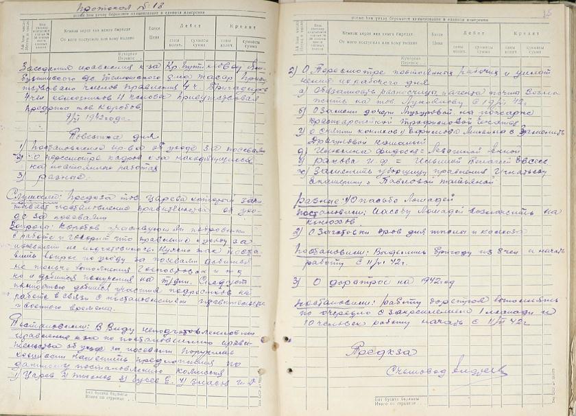 Решили: Работу по дорстрою выполнять по очереди с закреплением 1 лошади и 10 человек, работу начать с 11.11.1942.
