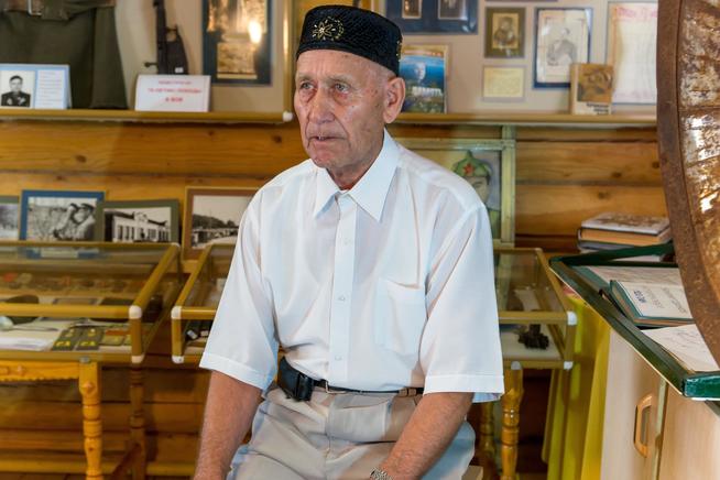 Фото. Гарипов Г.Г. дает интервью с воспоминаниями о годах войны. 2014