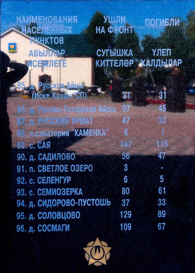 Аллея Славы. Стена Памяти. Списки ушедших на фронт и погибших на войне. п. Высокая гора. 2014