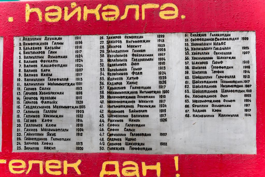 Стела со списками погибших на фронтах Великой Отечественной войны. с. Большой Битаман. Высокогорский район. 2014