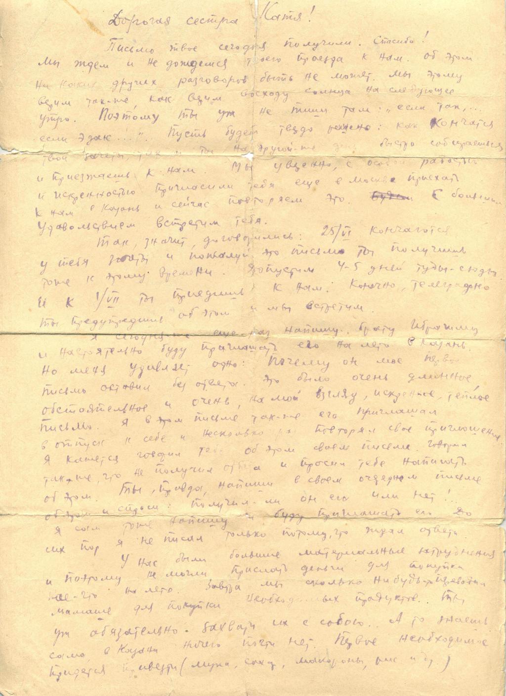 НМРТ КП-22536-17 Джалиль М М Документ Письмо татарского поэта М Джалиля сестре Х Залиловой (Кате)_1
