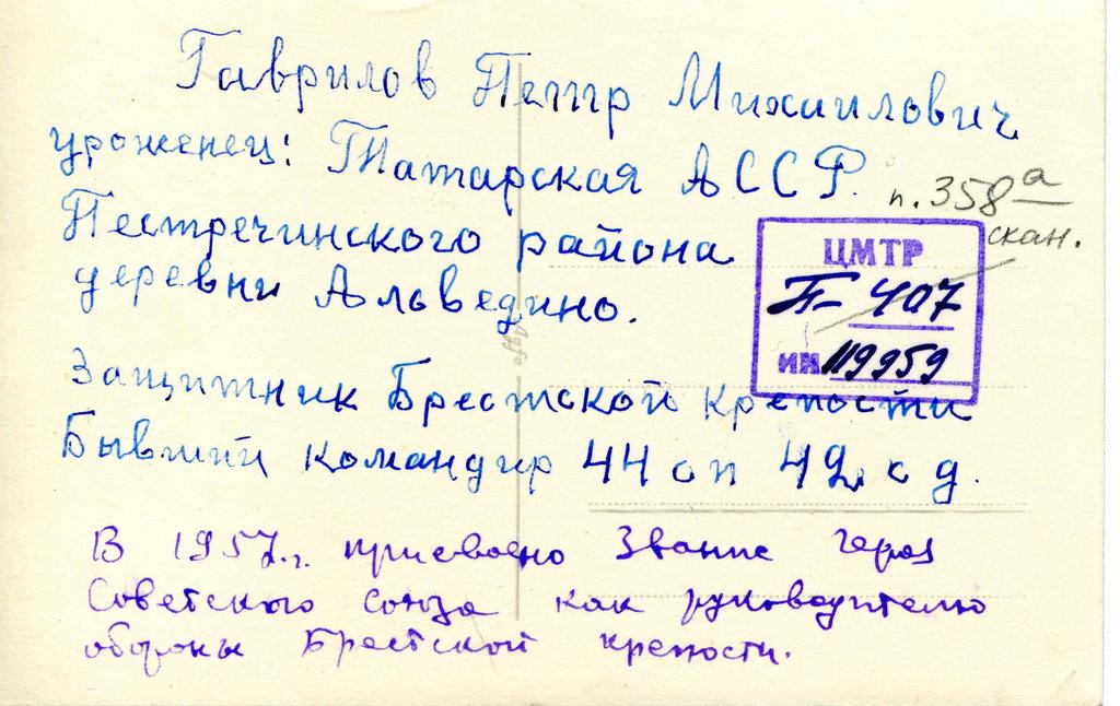 НМРТ КППи-119959 Фотопортрет Защитник Брестской крепости Герой Советского Союза Гаврилов Петр Михайлович_2