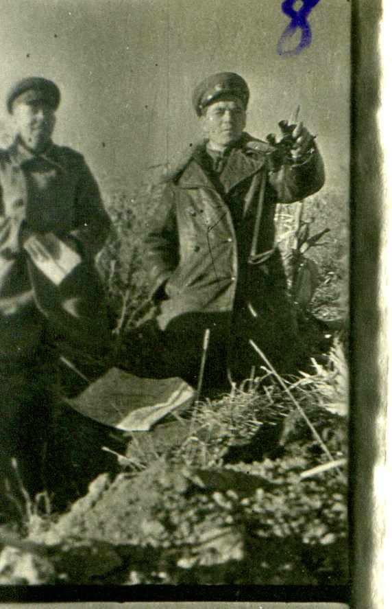 Гвардии генерал-майор Сафиуллин Г.Б. (справа) на передовой под Сталинградом. 1942