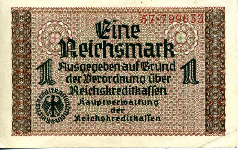 Денежный знак. 1 рейхсмарка. Германия. 1940 (лицевая сторона)