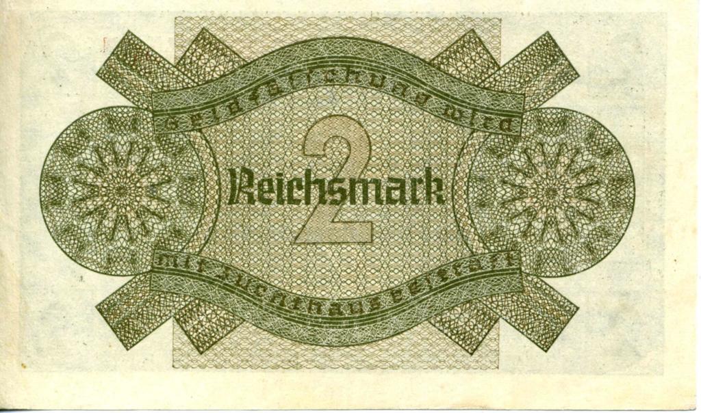 Денежный знак. 2 рейхсмарки. Германия. 1940 (оборотная сторона)