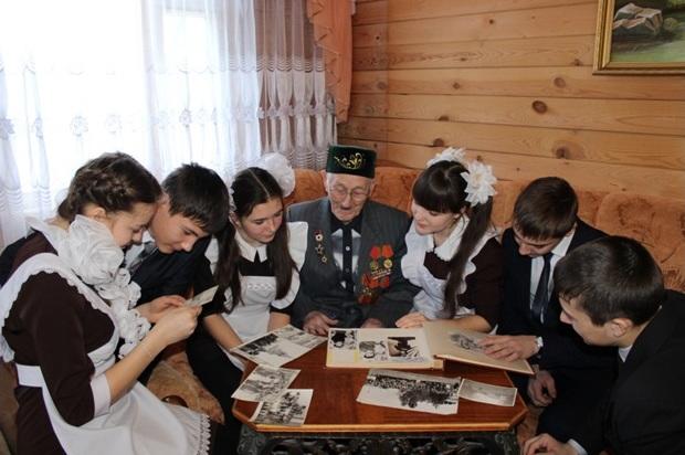 В 2015 году вся Россия будет отмечать славную дату – 70-летие Победы нашего народа в Великой Отечественной войне. Все эти годы память о бессмертном подвиге народа, отстоявшего независимость Родины, живет в сердцах россиян. 9 Мая — особая и священная дата в истории России. В связи с предстоящим великим праздником, в рамках плана мероприятий, посвященных 70-летию Победы, ученики МБОУ «Большенуркеевская СОШ» посетили ветерана Великой Отечественной войны АБДУЛЛИНА ГАБДЕЛХАКА АБДУЛЛОВИЧА. Он рассказал нам о войне, о своих подвигах и наградах. Дети задавали ему вопросы, смотрели фотографии, обсуждали интересующие их темы.