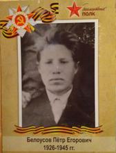 Белоусов Петр Егорович, родился в 1926 году в поселке Борисовка, русский, проживал в с. Августовка Большечерниговского района Самарской области, линейный надсмотрщик районного узла связи. Призван 12 ноября 1943 года. Гвардии младший сержант, командир отделения автоматчиков 10 гвардии отделения Минского мотоциклетного батальона 3 гвардии Котельниковского танкового корпуса. 14 октября 1944 г. награжден орденом Славы III степени. Погиб в бою 27 апреля 1945 года. Похоронен 2 км южнее г. Пренцлау в Западной Померании, Германия.