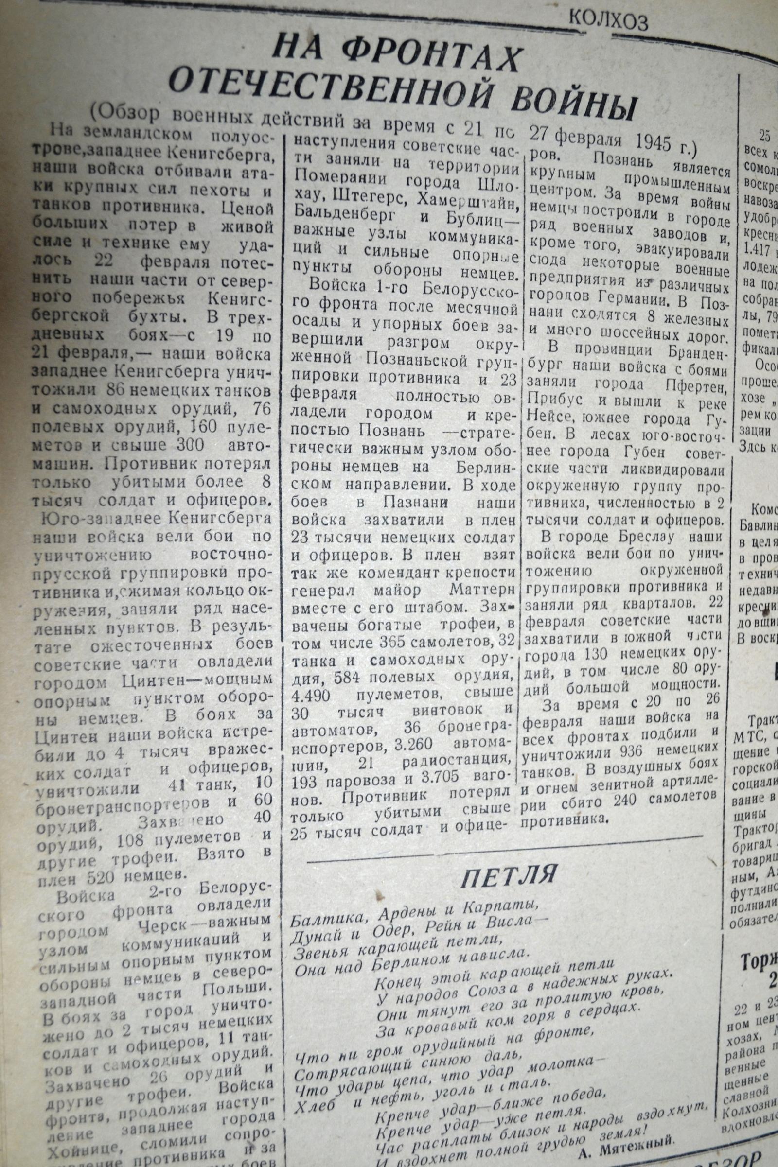 Районная газета «Колхоз», 1945 года.