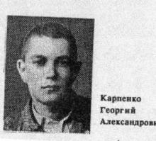 ВерхнеуслонскийКарпенко Георгий Александрович. 1925 г.р., с. Верхний Услон. Мобилизован Верхнеуслонским РВК. Служил в в\ч 44781.Фронтовики Опубликовано 2 октября, 2015 - 14:13 пользователем Решетова