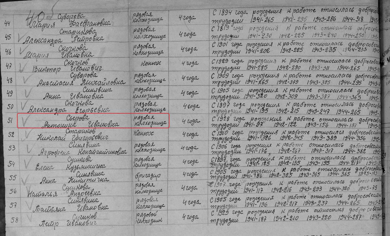 Козырева (Сырова) Антонина Ивановна родилась в 1928 году. Место жительства: с.Новошешминск Ново-Шешминский район ТАССР. В годы Великой Отечественной войны работала в колхозе им. Чкалова рядовой колхозницей. Награждена медалью "За доблестный труд в Великой Отечественной войне 1941–1945 гг." (Акт от 01.1946 г., фонд 3610, опись 2, дело № 325, лист 40). Выбыла.