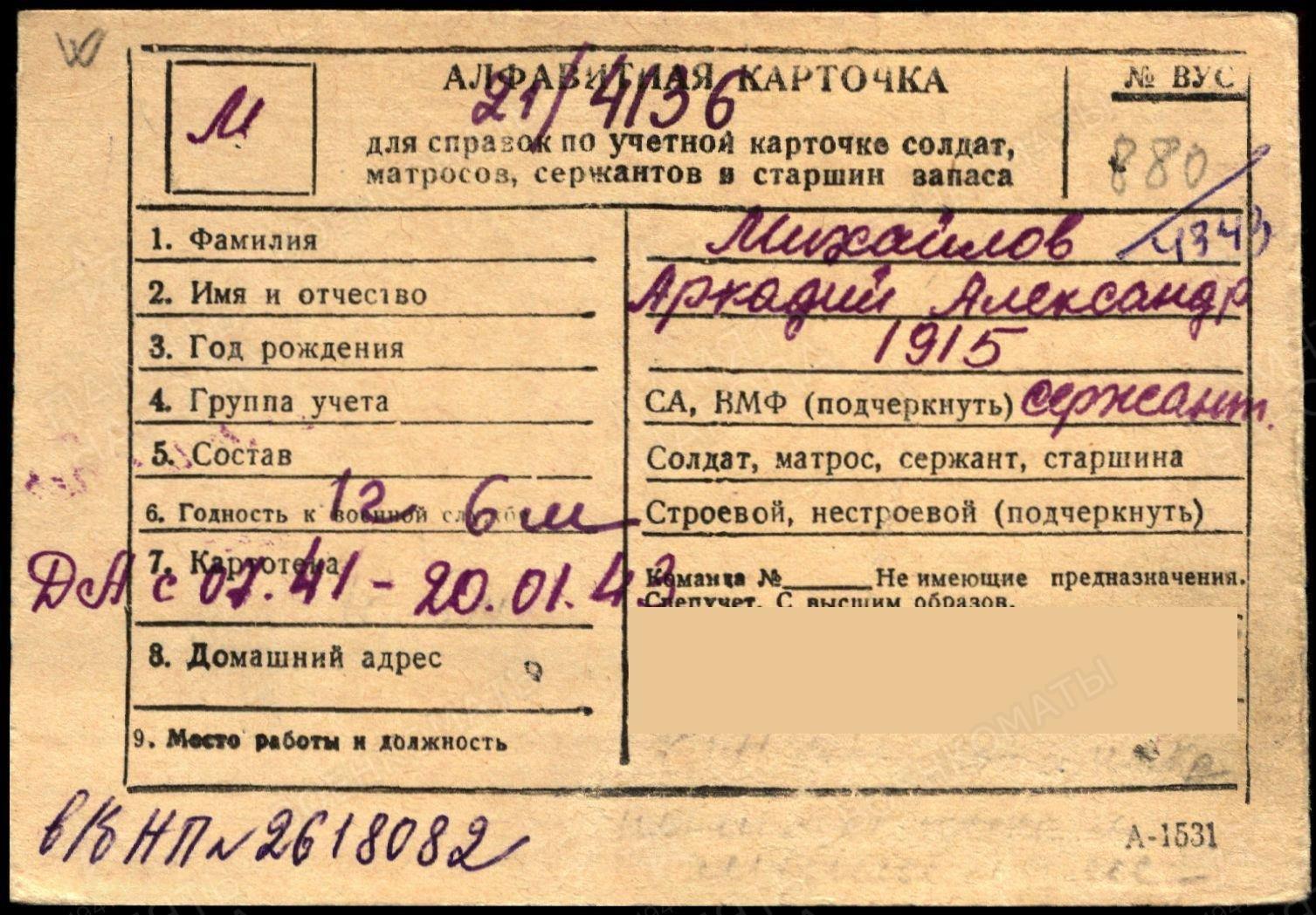 В 02.1942 г. ранило в ступню правой ноги осколком мины в районе ст. Андриополь. До марта 1942 был на излечении в г. Иваново.