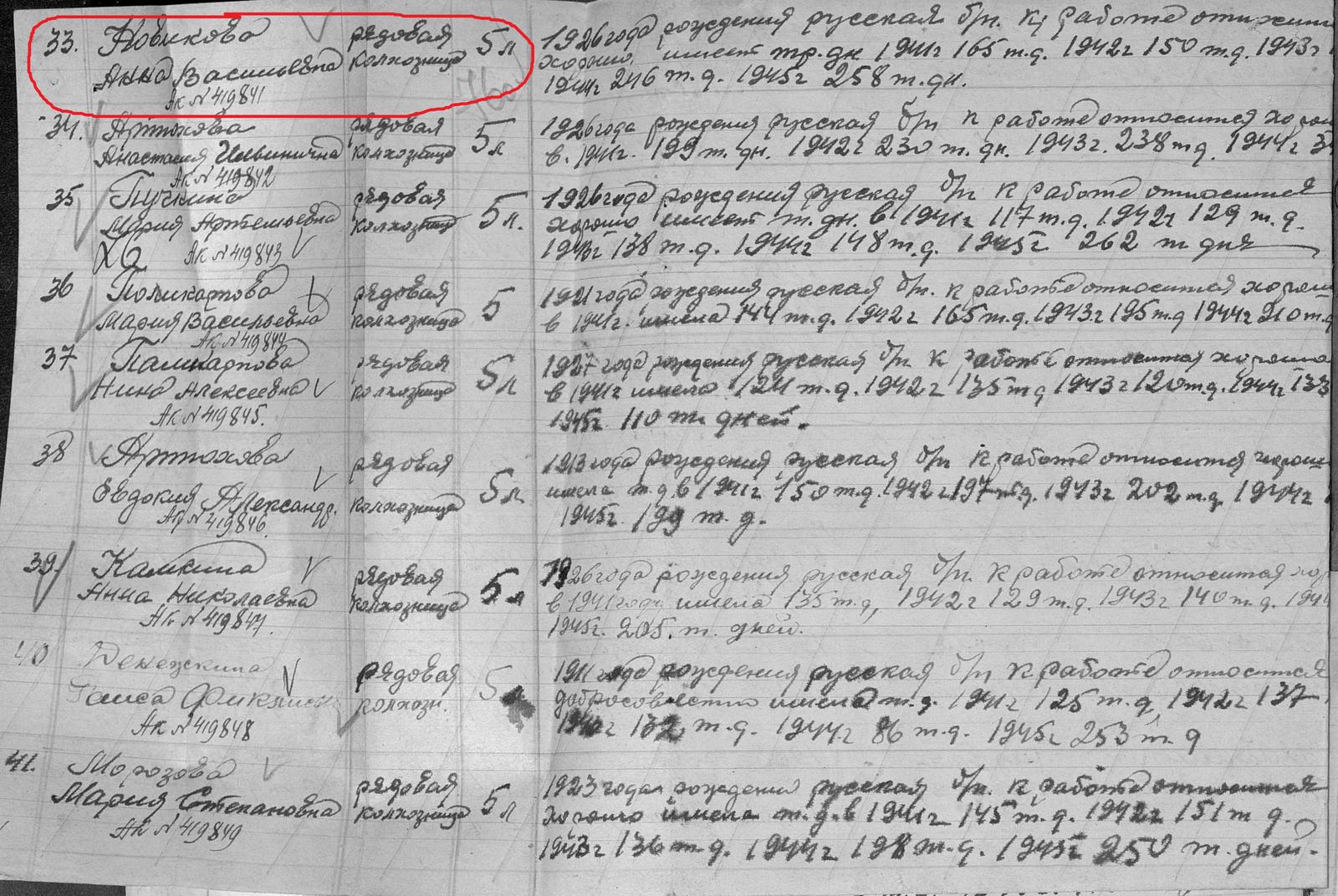 Новикова Анна Васильевна родилась в 1926 году. Место жительства: д.Дальняя Ивановка Ново-Шешминский район ТАССР (ныне Альметьевский район РТ). В годы Великой Отечественной войны работала в колхозе им.Буденого рядовой колхозницей. Награждена медалью "За доблестный труд в Великой Отечественной войне 1941–1945 гг." (Акт от 28 апреля 1947 г, фонд 3610, опись 2, дело № 325, лист 74, № 419841).