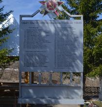 Памятная доска с фамилиями павших солдат установлена в д.Алексеевка. Материал - металл. Высота мемориальной доски 3м., длина 2,5 м.